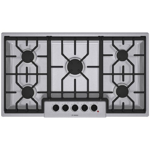 NGM5654UC Finish: Stainless Steel Features •Specifications Installation •Warranty Back To Top Features -Optisim Simmer delicate sauces without scorching (400 BTU). -Centralized controls for easy use and more intuitive operation of cooktop. -High quality color matched knobs with a stainless bezel. -Cooktop design coordinates with bosch wall ovens. -Low-profile design for a more integrated appearance. -Automatic electronic re-ignition - in case flame goes out the burner is automatically re-ignited. -Continuous Grates - effortlessly move pots and pans. easy to clean. -Sealed burners prevent spills from entering the burner box. Back To Top Specifications Product Specifications Product Type: Gas Cooktop Finish: